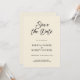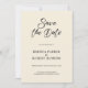 Um ambiente minimalista, moderno e claro, um fundo bege, uma caligrafia personalizável de guião preto, um design elegante para salvar a data. O bege pálido com a personalizável tipografia negra evoca uma sensação de elegância clássica.
