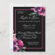 Convites Script Romântico de Casamento Floral a Preto e Ros