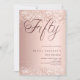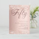 Um convite moderno e na moda para uma festa de aniversário 50ª. Decorado com confete. fundo de gradiente rosa dourado e a palavra Cinquenta escrita com letras elegantes de letras grandes em ouro rosa escuro. Personalize e adicione um nome e detalhes da parte.