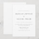 Cartão de anúncio de convite de casamento simples e elegante, em um estilo de design minimalista moderno, apresentando o nome da noiva e do noivo em tipografia serifada estilosa combinada com a redação tradicional para um sentimento sofisticado e chique em preto e branco clássico.