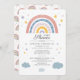 Crie seus convites para bebês bonitos com este bonito e adorável convite para aquarelas do arco-íris design em bronzeado, amarelo e azul, com estrelas e nuvens. O verso apresenta um padrão arco-íris de aquarela sobre fundo branco. Personalize facilmente esta placa de chá de fraldas bonitinha com os detalhes do seu chá clicando no botão "Personalizar" acima