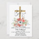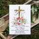 Script Watercolor Floral Cross Baptism Invitation apresenta uma simples cruz destacada com flores vermelhas, corais, pincéis e brancas e verde com suas informações de Convite Baptism abaixo. Personalize editando o texto nas caixas de texto fornecidas. Elaborado por ©Evco Studio www.zazzle.com/store/evcostudio