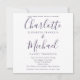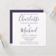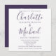Apresentando nomes elegantes de estilo de assinatura, este simples convite para casamento roxo e branco, na moda, pode ser personalizado com todas as suas informações especiais sobre o dia do casamento no verso, incluindo seu RSVP, acomodações e detalhes adicionais. Projetado por Thisnotme©