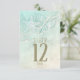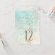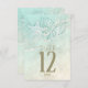Uma textura aquosa nos tons macios do mar e da areia é o fundo de elementos marinhos, como o peixe-estrela e as conchas, que são aperfeiçoados com ondas de espuma marinha para criar os pedaços desta suíte de casamento. O cartão de número da tabela de casamento mostrado aqui contém todos os itens acima, além de uma modelo para adicionar facilmente seu próprio número, iniciais e data de casamento. Procure ID837 para ver todas as peças de coordenação neste conjunto.