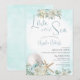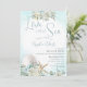 O amor é tudo o que fazemos no mar, chá de panela de praia antigo. Estrelas tropicais e dólares de areia adornados em rosas florais bonito, brancos e azuis e em fita, convite romântico à praia floral em aqua mole e tons naturais.
