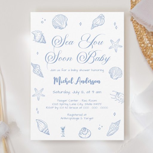 Convites Sea You Em Breve Chá de fraldas Costeiro