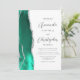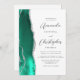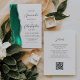 A borda esquerda deste elegante convite de casamento moderno apresenta uma aquarela verde-cerâmica com borda cortada com falso brilho prateado. O texto personalizável combina o script de cinza de carvão e as fontes sans serif em um fundo branco. O verso oferece espaço para detalhes do casamento, juntamente com um código QR que os convidados podem digitalizar para visitar seu site e RSVP, o que economiza o custo de impressão e envio de cartões RSVP separados.