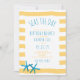 Almoço de aniversário na praia. Listras náuticas irregulares amarelas com sotaque aqua de estrelas-do-mar e texto moderno e caprichoso. Personalize os detalhes ou entre em contato comigo para obter assistência.