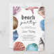 Graduação Convite de festas de Praia, enquadrado com conchas de aquarela e criaturas oceânicas. A expressão "festa de praia" é escrita à mão e o texto restante é perfeitamente editável.