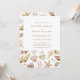 Convite para Casamento de Seashell. Único & na moda, este convite para casamento na praia moderna apresenta lindos conchas, corais e estrelas pintadas à mão em neutrais de tons de terra. O texto é bronzeado e o fundo é branco. O verso inclui um padrão de células brancas. Localize itens correspondentes na Coleção de Casamento de Praia de Watercolor Seashell.