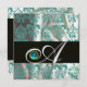 CONVITES SEDA PRETA AZUL DAMASCO MONOGRAMA ÁGUA-MARINHA OUR