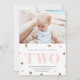 Um elegante e macio segundo convite de aniversário que apresenta aquarela e brilho confetti polk pontos e uma grande idade. Par com balões de confete e bonito decoração de festas cor-de-rosa e você tem uma bela primeira festa de aniversário para seu bebê.