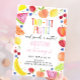 Este adorável convite apresenta as minhas frutas coloridas pintadas à mão.