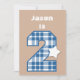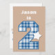 Xadrez B02 BLUE com estrela do segundo aniversário do . Este design contemporâneo com seu trendy número de xadrez padrão é uma maneira divertida de convidar as pessoas para a celebração de aniversário de um garoto.