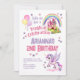 Celebre o dia especial de sua garotinha com este convite de festas encantador de segundo aniversário de unicórnio (ou qualquer aniversário)! Com um unicórnio roxo e rosa giro, balões festivos e um majestoso castelo mágico com arco-íris e estrelas, este convite é perfeito para uma celebração mágica. Sua pequena amiga ficará feliz em se juntar à diversão!