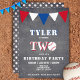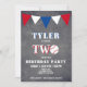 Convite de aniversário para beisebol em Quadro de Calça para segundo aniversário de rapazes // Cartão de festa de aniversário de beisebol em branco para o segundo aniversário. O design tem uma grande bandeja de beisebol e bunting em cores vermelhas, brancas e azuis no fundo do quadro. O lado de trás tem um padrão de beisebol. Personalize este convite de aniversário com o nome de uma criança e uma fotografia e personalize todos os dados do convite. Excelente como convite de festas segundo aniversário para rapazes.