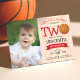 Apresentando o Convite para segundo aniversário de Foto da Cute Basball Court e Red Ribbon, com uma foto personalizada do seu bebê. Com o fundo da quadra de basquete, a fonte divertida e o basquete como palco central adornada com uma fita vermelha, este convite captura a essência de uma celebração com o tema do basquete. O esquema de cor laranja adiciona calor, enquanto o design bonitinho apela tanto a crianças quanto a pais. É a escolha perfeita para a festa de aniversário de uma criança, enfatizando esportes e a alegria da brincadeira. O convite apresenta uma estética vibrante e elementos temáticos, garantindo um evento memorável e divertido. Prepare-se para juntar e celebrar com este atraente e charmoso convite de segundo aniversário.