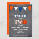 Convite de aniversário para segundo aniversário/festa de aniversário de basquetebol em calçadão para rapazes // Cartão de de basquete bonito para o segundo aniversário. O design tem uma grande bola de basquete e bandeiras de cores laranja e branca no fundo do quadro. O verso tem um padrão de faixa em um fundo laranja. Personalize este convite de aniversário com o nome de uma criança e uma fotografia e personalize todos os dados do convite. Excelente como convite de festas segundo aniversário para rapazes.