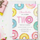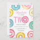 Está planejando a segunda festa de aniversário de uma garota? Este belo convite de aniversário é decorado com rosquinhas de aquarela em tons pastéis. Facilmente personalizável. Original Watercolor © Michele Davies.