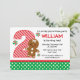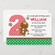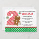 O design bonito do segundo aniversário do Natal com um bastão de doces listrou o número 2, o menino pequeno adorável do pão-de-espécie e doces de peppermint listrados vermelhos e verdes. Original de PinkInkArt!.