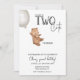 Dois convites de aniversário bonitos a BEAR mostram um ursinho de pelúcia bonito segurando um grande balão com o número dois escrito nele. O trabalho de arte é criado com aquarelas e é um adorável segundo convite de aniversário.