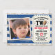 Convide seus hóspedes em estilo com este super fofo convite de festas de segundo aniversário de tíquete esportivo de futebol. este design apresenta um fundo rústico de madeira azul e branca, à esquerda está a foto do seu filho em um quadro (o quadrado funciona melhor) e à direita está um tíquete com todas as suas informações pessoais. Diz: "Nosso Pequeno Quarterback está virando Dois, Por favor, junte-se a nós para este Episódio de Aniversário épico, em honra do nome do seu filho, data da festa e endereço com RSVP abaixo. Uma bola de futebol substituiu a letra "O". A parte traseira do cartão tem listras azuis e brancas em uma madeira de tempo correspondente. Este é um convite especial personalizado que sua família e amigos adorarão e guardarão como recordação. Elaborado por ©Susan Coffey e Tim Coffey. Fotografia © Storytree Studios, Stanford, CA.