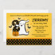 Este design é perfeito para um segundo aniversário de Halloween com um fantasma feliz, morcegos engraçados e um sorridente Jack-O-Lanterna. O pequeno fantasma tem o braço em volta de uma grande polca pontilhada número 2. Polka com fronteira pontilhada. Excelente para qualquer segundo aniversário em outubro. Personalize-o com seu próprio texto personalizado e sua cor de plano de fundo. PinkInkArt original!