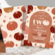 Groovy Floral Pumpkin Segundo Convite Para Menina De Aniversário, Nossa Pequena Abóbora Está Virando Dois, segundo aniversário Boho Retro Pumpkin Arch