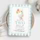Este belo convite de segundo/segundo aniversário de dois bobos apresenta um ganso com chapéu de festa e balões em xadrez de gingham azul. Personalize-o para as suas necessidades. Você pode encontrar produtos correspondentes na minha loja.
