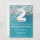 convite de festas de segundo aniversário para Teal e Glitter Silver Glitter para uma menina de 2 anos com moderno roteiro escrevendo e balões de folha divertida.