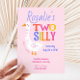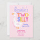 Celebre o seu grande dia com este adorável e caprichoso convite para segundos aniversários! Apresentando um ganso de bobo divertido e uma tipografia colorida e divertida, este doce design é perfeito para a primeira celebração de aniversário de uma menina. A parte traseira da placa é terminada com um padrão de gingham cor-de-rosa coordenado, adicionando um toque bonito inspirado na fazenda. Uma escolha encantadora para uma festa de aniversário em casa ou em casa de fazenda!