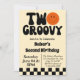 Dois Convite para segundo aniversário Groovy Boy. Dois Convite de festas de Modelo de Convite para Retro segundo aniversário Groovy.
