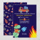 Prepare-se para um bom momento com este Convite de festas do segundo aniversário Fireman T-Rex! Perfeito para seu amante de bombeiros e dinossauros, este design único apresenta um T-Rex sem medo no chapéu de bombeiro, rodeado por caminhões de bombeiros, mangueiras e chamas. Personalize os detalhes e edite a idade para ajustado de sua celebração. Ideal para uma festa de aniversário de dino-mite que é aventureira e divertida.