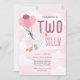 Planejar uma segunda festa de aniversário de ganso de bobo? Este convite iluminado apresenta um ganso branco giro flutuando no céu com um monte de balões cor-de-rosa. As nuvens desenhadas pela mão e a fonte divertida tornam-no perfeito para um céu ou ganha o aniversário do seu filho de 2 anos. Quer você esteja fazendo um aniversário de "Dois Bobos", ou só quer algo divertido e doce, este convite é o motivo.