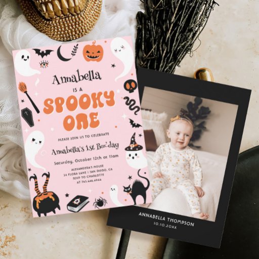 Convites Segundo aniversário Rosa Fotografado Halloween Gir