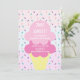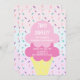 Dois Doce! segundo aniversário sorvete com aspersores azuis cor-de-rosa, púrpura e lacre e fundo de aquarela.