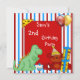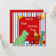 Convite para segundos aniversários, Dinossauro Verde, Urso, Stripes brancas e azuis vermelhas, cupcake azul, balões coloridos Festas de aniversário Meninas adolescentes. Personalize com seus próprios detalhes.