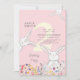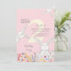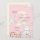 Colorido. Flores selvagens. Garota. Coelhinhos. convite de festas do segundo aniversário. Rosa e amarelo. A idade pode ser alterada.