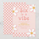 Seis é um clima Garota Groovy inspirada em convite de aniversário de 6 anos com fontes dos anos 70 e margaridas e padrão de xadrez.