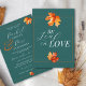 Esta peça única e elegante sobre as palavras "Seja Folha no Amor" cor lacre / laranja queimada / cor ferrugem O convite para o casamento de outono apresenta ornamentos de cores de queda aquática folhas mapeadas na frente e no verso, com detalhes de tipografia de script clássico, incluindo um trocadilho de folha divertido para fazer os seus convidados sorrirem :) Personalize facilmente o modelo com o seu texto, escolha a sua forma de convite e o cartoldo- e depois escolha entregue à porta frontal ou faça o download do arquivo digital para impressão! Talvez você queira editar ainda mais o posicionamento de seus componentes de texto depois de adicionar seus detalhes - para isso, clique no botão azul "Editar usando a ferramenta design" na parte inferior da janela "Personalizar", navegue até a guia "camadas" na coluna esquerda da tela, selecione a camada frontal ou traseira e clique no elemento de camada que você gostaria de alterar e torne-a sua! Quer a suíte de papelaria do casamento? Podemos ajudar com isso! Verifique as 2 datas (1 formal com envelope incluso e 1 cartão-postal de face dupla), + o conjunto correspondente de cartão rsvp, detalhes de casamento do tamanho do médio / cartão de caixa infográfico da linha do tempo, envelope endereçado ao retorno, banda de barriga e programa de cerimônia de 4 pg dobrados, e mais designs coordenadores na nossa coleção "Be Leaf In Love" - continue rolando para ver a coleção ou vá para minha frente de loja do Zazzle e veja a coleção na sua totalidade lá: os designs personalizados / pedidos de produtos e perguntas modelo são sempre bem-vindos! Clique no botão "mensagem" ou envie-mail diretamente (com tempo de resposta rápido!): contact@figandlilyco.com. Design é carinhosamente criada por Fig e Lily Studios - enviando bênçãos e obrigados!