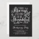 Há sempre algo para agradecer. Convide convidados para o seu evento com este convite de Ação de Graças personalizável. Ele apresenta uma citação de Ação de Graças na caligrafia rustica em um fundo de quadro negro. Personalize adicionando seus detalhes. Itens correspondentes estão disponíveis.
