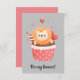 Um cupcake engraçado bonito com um leão cercado por corações cor-de-rosa. Pode ler "seja minha leoa"