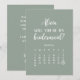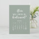 Cartão de proposta moderno da madrinha com calendário. Linda cor verde de sábio. Você será minha dama de honra? pode ser mudada para texto para madrinha de casamento, dama de honra, florista etc. Você pode dar a ele que você será minha dama de honra também parte da oferta de proposta de dama de dama de honra. Personalizar calendário, alterar fontes, cores da fonte, cor do plano de fundo. Edite na ferramenta design para mover o número de enquadramento do elemento para sua data.