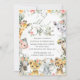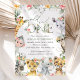 Convide amigos e família de estilo e dê o tom para o seu dia especial com este charmoso convite de aniversário. Design apresenta animais da selva (girafa, macaco, zebra, leão, elefante, chita, merkat, rinoceronte), flores de hibisco e folhas de eucalipto em fundo branco.