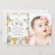 Convide amigos e família de estilo e dê o tom para o seu dia especial com este charmoso convite de aniversário. Design apresenta animais da selva (girafa, macaco, zebra, leão, elefante, chita, merkat, rinoceronte), flores de hibisco e folhas de eucalipto em fundo branco.