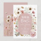 Este lindo design apresenta um requintado display floral de flores silvestres boho em tons suaves e abafados de rosa, bege e mostarda, juntamente com borboletas graciosas e abelhas ocupadas que adicionam um toque de encanto, representando alegria, liberdade e a beleza da natureza.