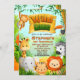 Celebre a aventura na savana para todas as idades. Este convite de Safari é uma interpretação moderna da natureza selvagem que amamos. Cada elemento e plano de fundo são desenhados digitalmente para combinar e proporcionar uma aparência de filme animado, com o nome do aniversariante destacado no centro para dar um toque personalizado ao convite