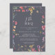 Este clássico convite de festa de noivado de "Eu faço", azul selvagem, é perfeito para uma festa de noivado rústica, janto de ensaio, chá de casais, após a festa ou qualquer evento de casamento. A design apresenta flores silvestres brancas, amarelas, roxas e brancas com folhagem em fundo de rosa e aquarela verde.