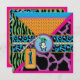 impressões Safari, girafa, zebra e chita e um padrão de bolinhas, com macacos pendurados em uma videira e etiquetas de aparência 3D, arcos, primeiro convite de aniversário.