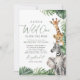 Convide amigos e família para comemorar um pouco no caminho com este convite de chá de fraldas temático safari.